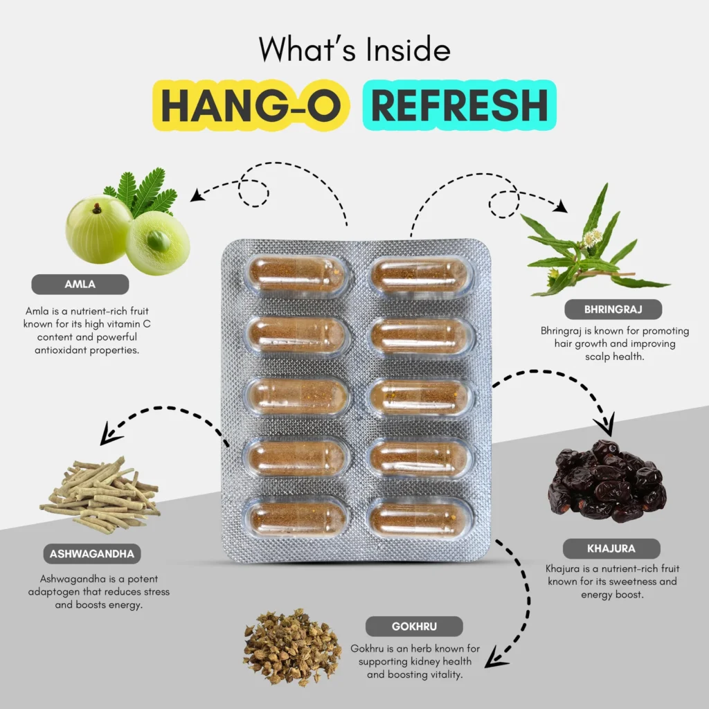 Prevent Hangovers Before They Start: Take Hang-O Refresh before your night out, and wake up feeling energized and ready to take on the day without the usual hangover symptoms.