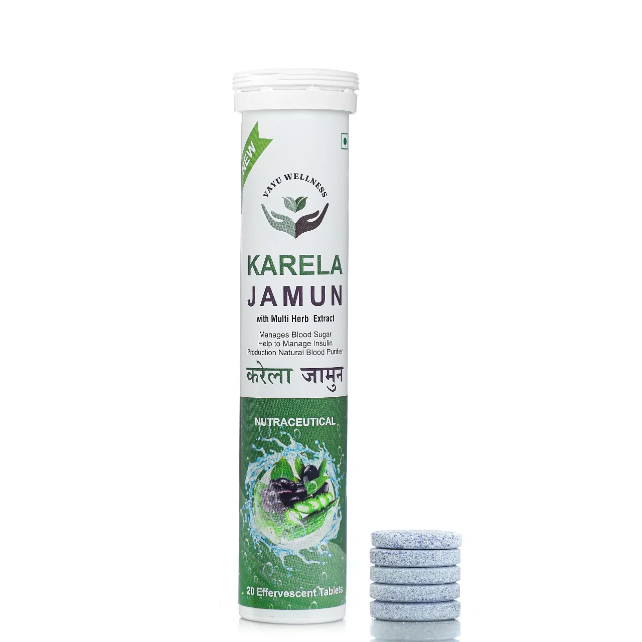 Boost your health naturally with our Karela Jamun Multi-Herb Extract Effervescent Tablets. Expertly formulated to support your well-being, each tablet combines the power of 12 potent herbal extracts to help manage blood sugar levels, support insulin production, and purify the blood.